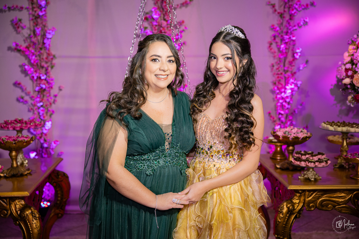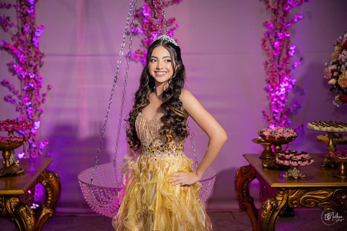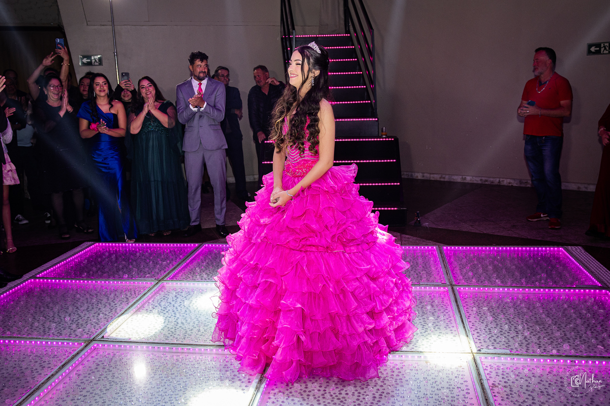 Foi uma noite alegre, encantadora e cheia de emoção — da entrada triunfal ao último sorriso da pista de dança. Tudo pensado com carinho para que esse momento fosse exatamente como ela sempre sonhou!